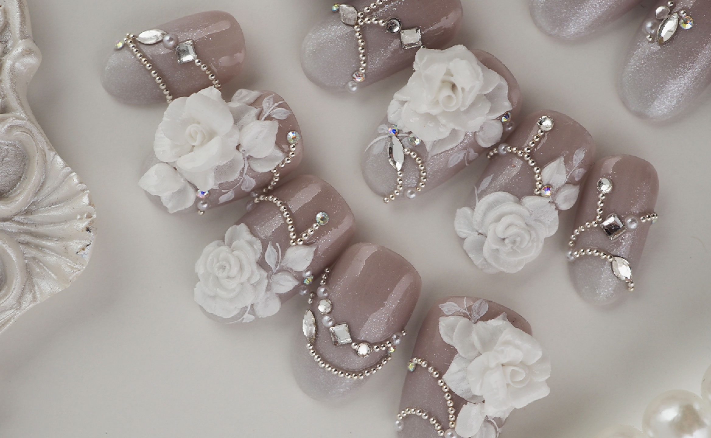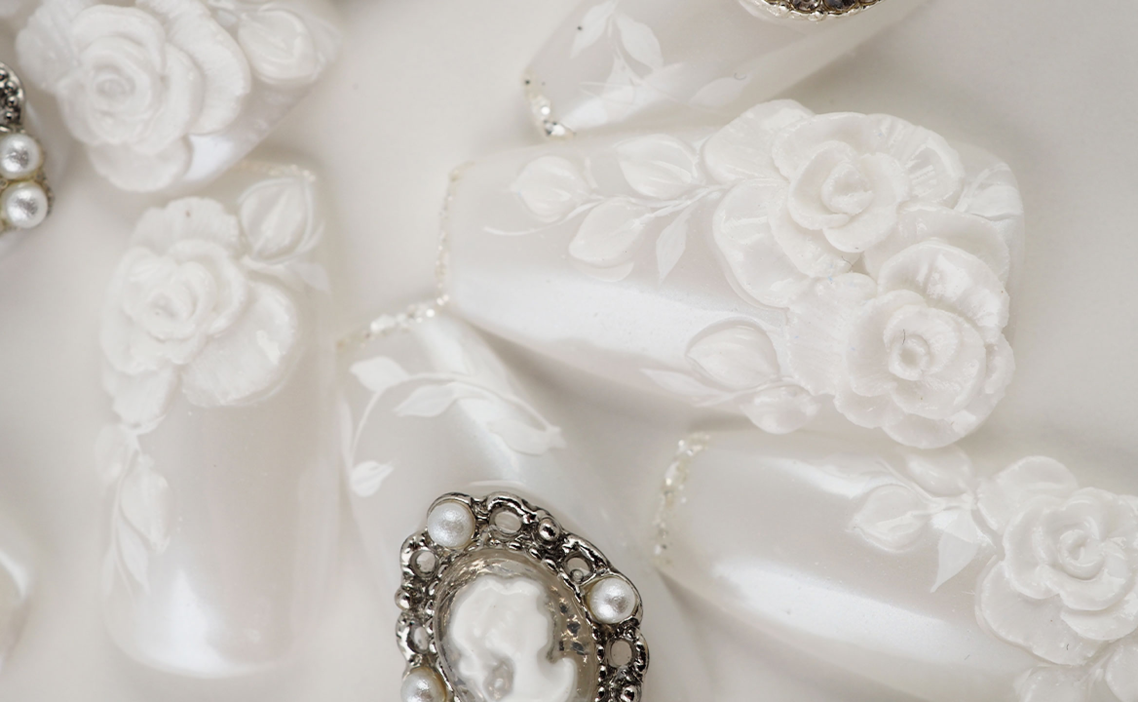 LeeBのブライダルネイルは、最高の瞬間に彩りを添えます。結婚式でお召しになるドレスや打掛などの色味、デザイン、お好みに合わせた唯一無二のネイル体験を。