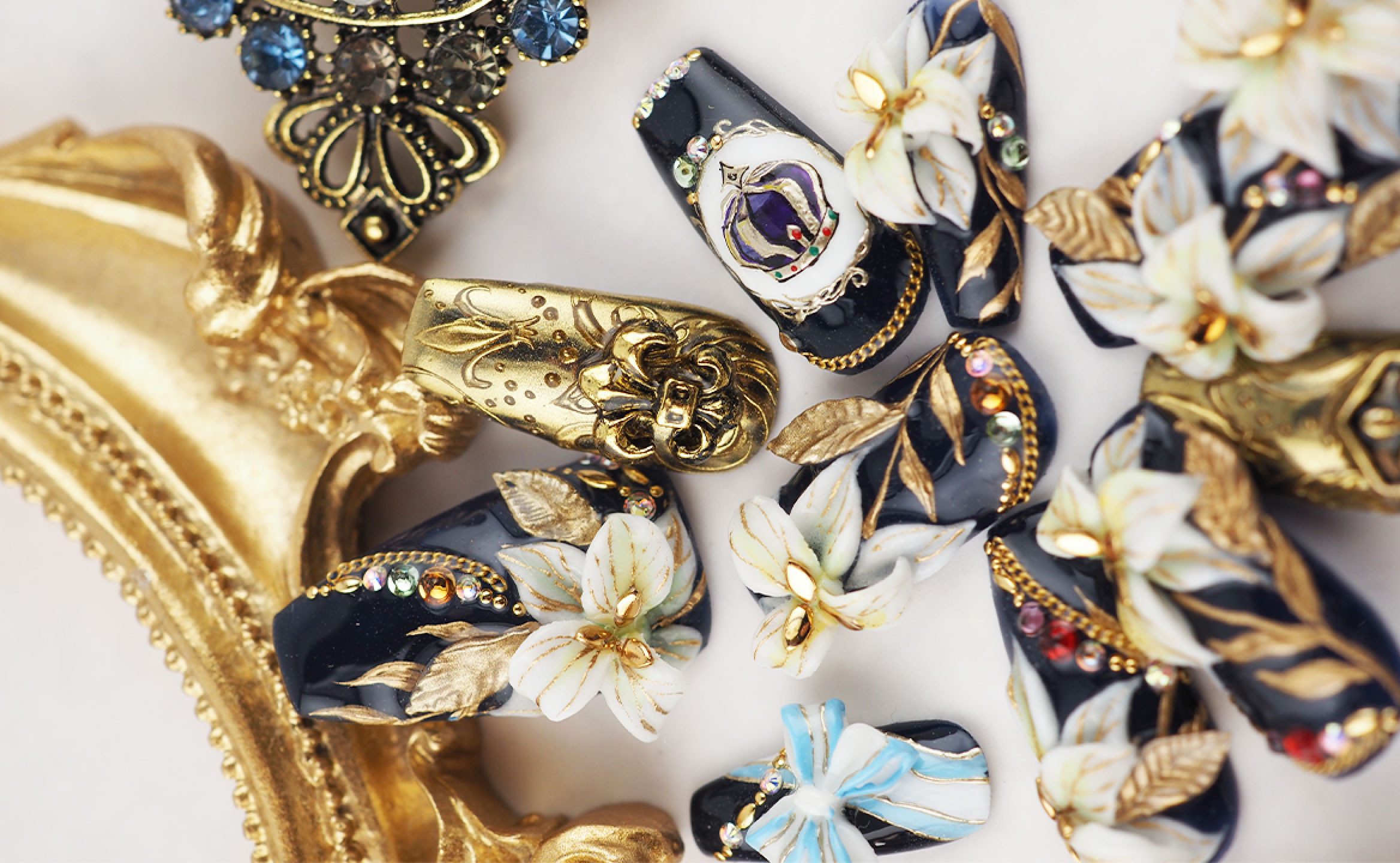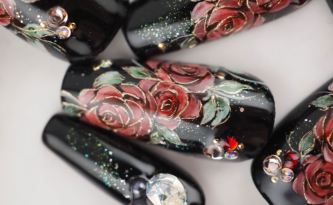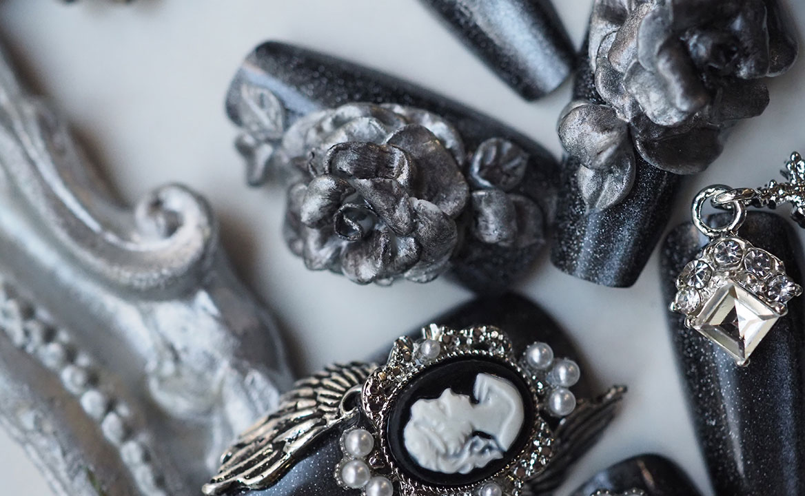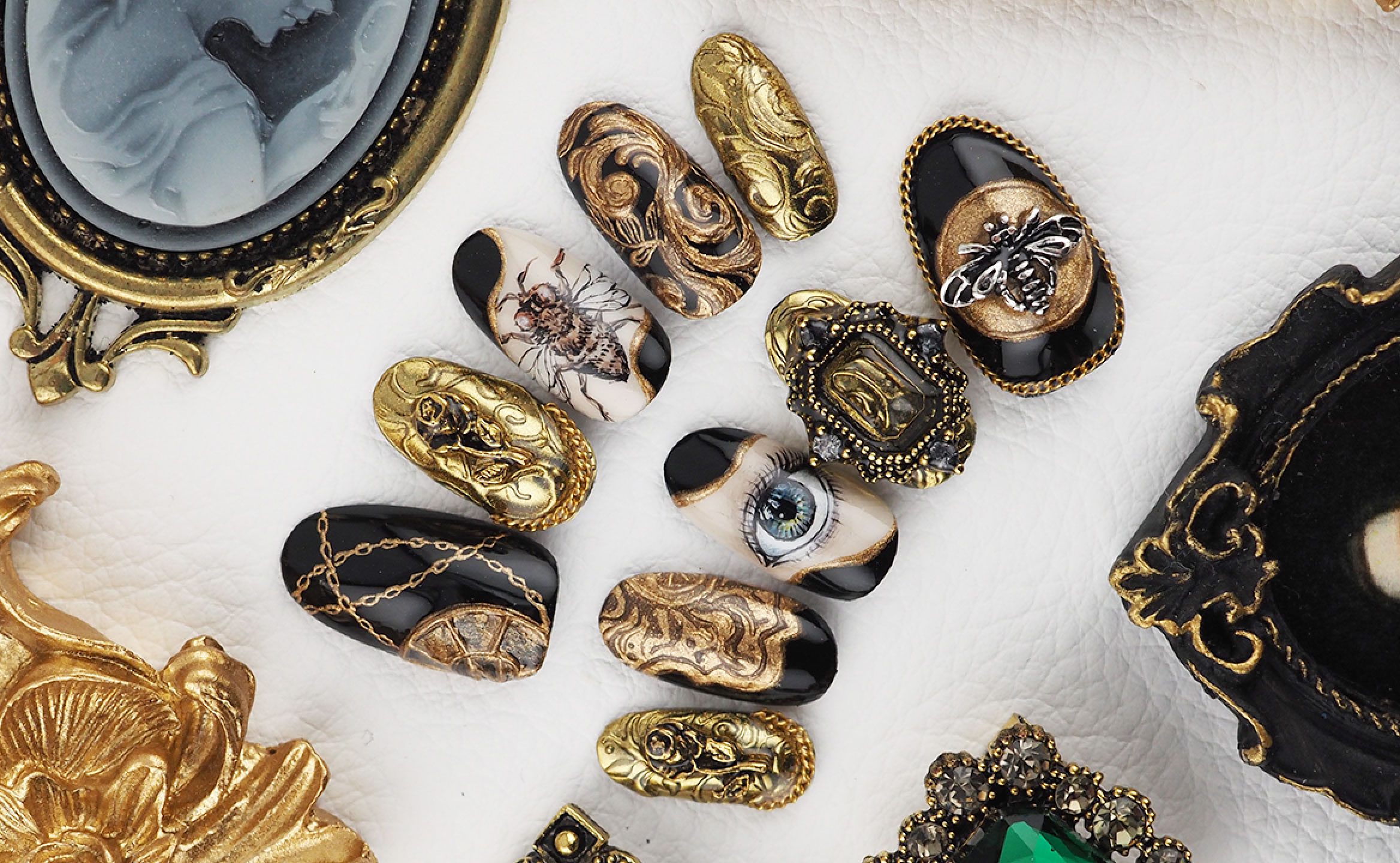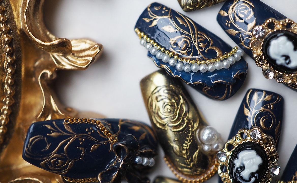 確かな技術から紡ぎ出される重厚かつ上品なゴシック調ネイルは、LeeBが得意とするデザインの一つです。指先に繊細なアートを纏うような感覚をぜひ体験ください。
